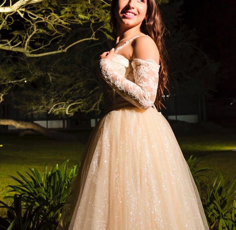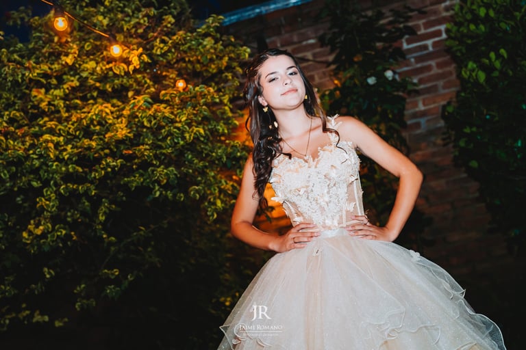 Entiendo que tus 15 años son mucho más que una fiesta; son ese momento mágico donde tu personalidad brilla más que nunca. Mi trabajo es acompañarte para que cada risa, cada abrazo y cada detalle de tu gran noche queden guardados para siempre con un estilo moderno y elegante.