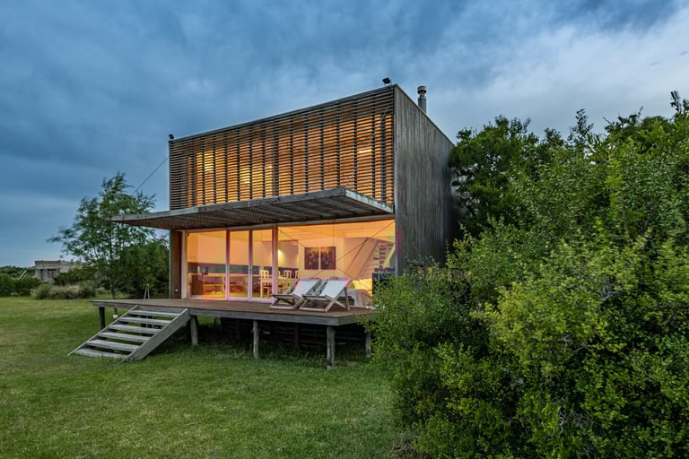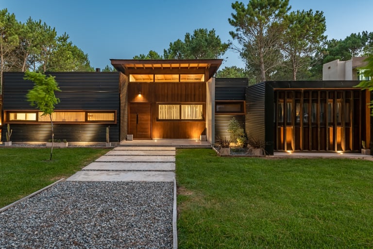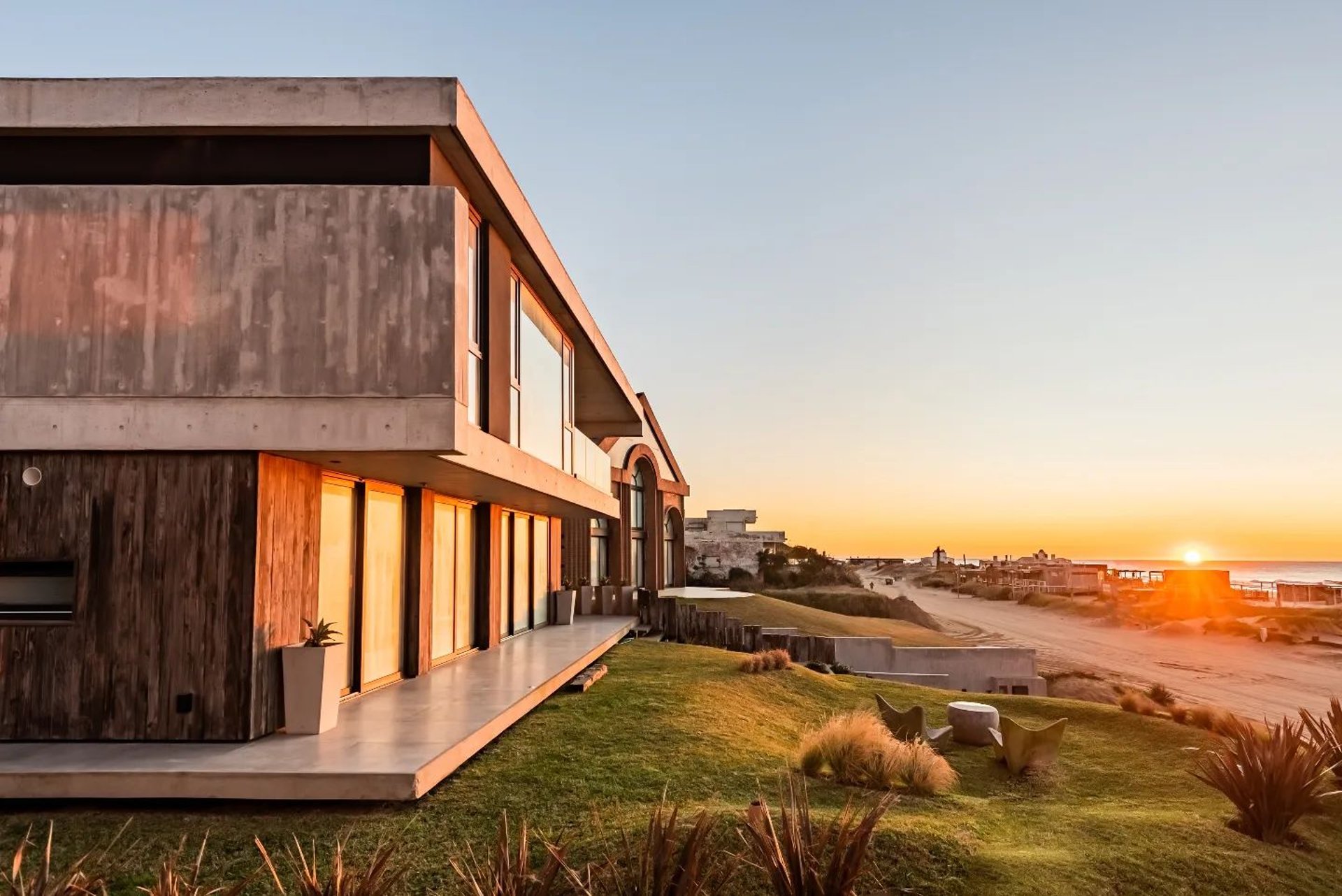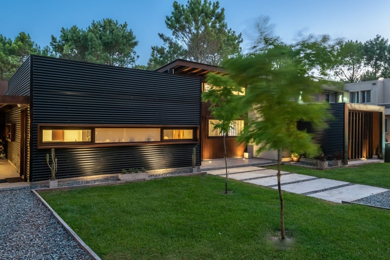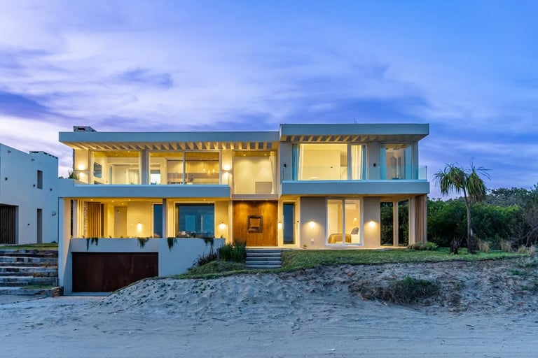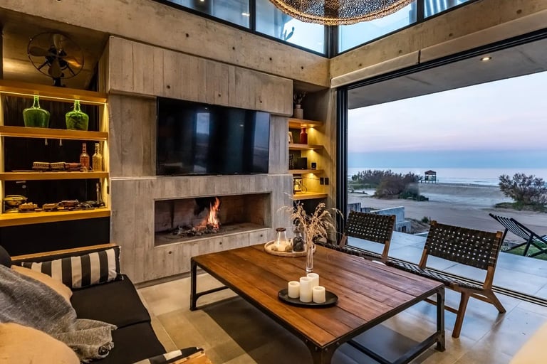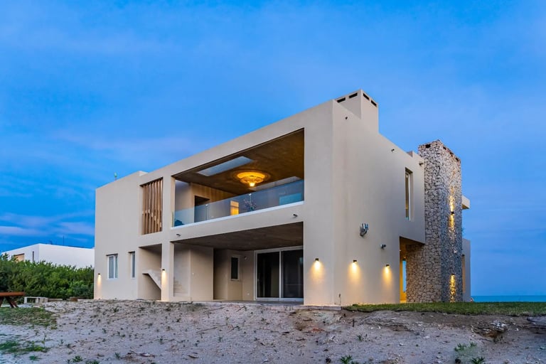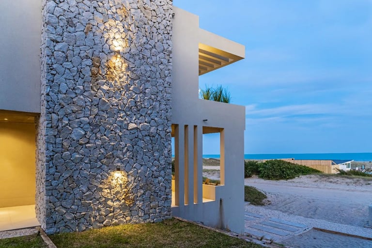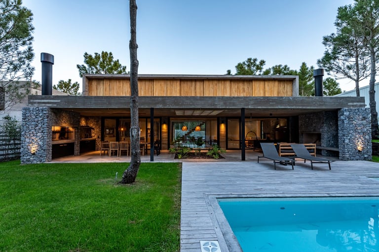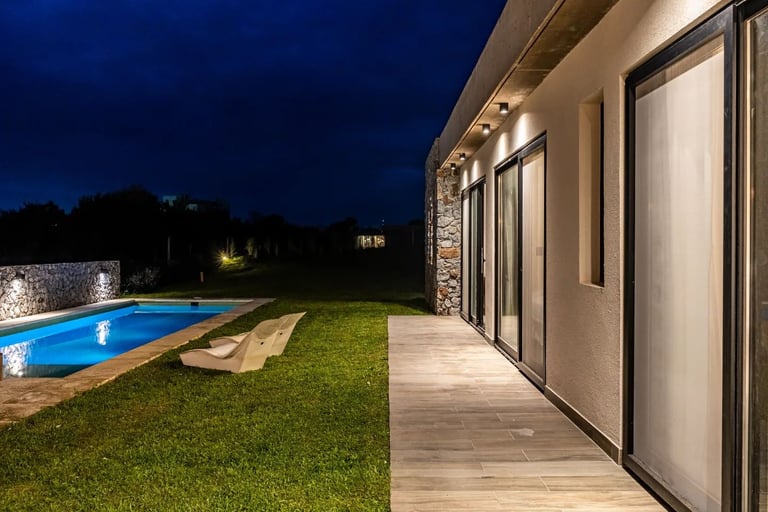 Sesiones al Atardecer: Capturo la transición hacia la hora azul, destacando el diseño de iluminación artificial y creando una atmósfera sofisticada y acogedora.